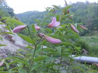 知る人ぞ知る。ヒメサユリの群生地は、連日の暑さから間もなく見頃を迎えます。毎年老夫婦が丹精込めて管理しているため、満開時は圧倒されるほどの見応えです。今年の開花時期は今月10日頃になりそうでした。場所等のお問い合わせは白川荘までご一報下さい。