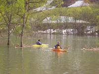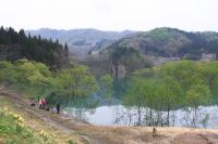 白川湖の水面から柳の木が顔を出す光景は、他ではなかなか見られません。新緑が一段ときれいな時期を迎えました。湖面の色合いもその日の天候で青くなったり緑に変わったり、毎日違った景色になります。