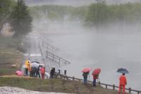 朝からの雨と、外気温が低下した事から、昨日の午後から白川湖にモヤが立ち込めて、とても幻想的な風景に変りました。昨日の方々は本当にラッキーでしたネ。何回通ってもこうした条件にめぐり合えない方が大半なのに。これを逃すまいと、多くのカメラマンがシャッターを切りまくっていました。雨も寒さもなんのその。