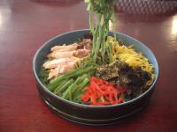 6月30日までの期間で行われている「山菜食堂」が絶好調。旬な山菜もどんどん入って来ています。 30品ほどの豊富な山菜メニューや単品料理は、今だけです。 写真は、ほうれんそう入りのそばを使用した「山菜鶏 冷し麺」。駄洒落がすきな支配人が山菜採りと山菜鶏をかけて考案。なので、あっさりした鶏肉の蒸し焼きいりです。¥800  |