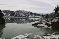 このチャンスを逃すまいと、カメラマンもチラホラとお出でになり始めました。 白川湖の湖面の雪も大分少なくなり、水量もどんどん増えてきています。 |