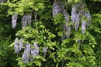 5月の末まで白川湖岸公園の桜を楽しみましたが、辺りはもうすっかり初夏の様相となり、新緑が目に眩しい季節となりました。桜の後は、もちろん藤の花が一押しです。藤紫とはよく言ったもの、とても落ち着いたきれいな色です。大きな木に鈴生り状態に咲き乱れる様は正に圧巻。
