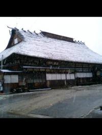 茅屋根に白く積もった初雪も鄙びて良いですね。
