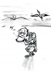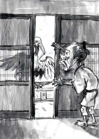 山路愛子さん著予定の 「むかーし昔あったけど」より 「だんまりくらべ」です。 年寄り夫婦が美味しいぼた餅をいただき 最後に残った一個をどちらが 食べるか・・のお話です。 ウチだったら半分分けするかな? 知人同士のお茶呑みや、年末の寿司を囲んで よくこんな状況になった経験がありますが・・ さて、皆さんはどんな選択を下しますか? この老夫婦 山路さんご夫妻と少し似て描いてしまいました。 山路さんご夫婦大変仲が良く、羨ましい会話・・ いつも心温まる夫婦漫才をご披露して戴いてます。 むかーし中津川で教員をしていらっしゃった時の お話で・・ こちら前回の馬の田楽のカラー版の挿絵でした。