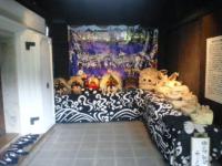 立派な木箱に入っておりました 記名を見ると昭和33年8月とあり私と同級生で愛着がわきます 獅子頭の状態は良く多少の擦過傷はあるものの美品です しかし、中の被り物を見るとプラスチックのザルを使用していました 先日作って戴いた竹製の被り物に取り替え、紐や頭の擦れ止めクッション なども整備してはと考えております 獅子の前幕の位置が下がり過ぎ、顔の直ぐ前に幕がくるので 取り付け位置のバランスを改良します 牙が雌獅子だけにあり違和感 雄獅子に牙があり雌獅子に無いのが多いのですが・・ 金で描かれる歯も無く描き足すことも提案していきたいと考えます 補修修正であるべきものが省略され形が変わっていくことがあります 昔の獅子踊りの写真資料でもちゃんと整備しておくと良いですね |