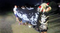 清水町黒獅子会の獅子舞稽古です 相変わらず雲行きは怪しく、湿って生温い風 大人の参加者は優れませんがね子供たちは元気でやる気満々 どういう反応になるか試しに低学年用の童獅子を投入してみました 最初は警戒し様子見・・ 獅子舞を始め、安全とわかると幕はパンパンに膨らんできました