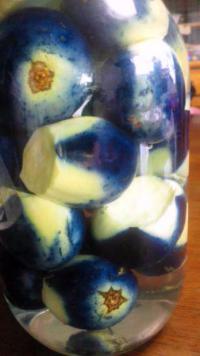 獅子宿の愛子さん秘伝のなす漬けを相方が受け継ぎました 前回は色合いもマダラになり、漬かり具合もところど生 なすの天候などのコンディションも仕上がりに左右するようです 今回は近くの上伊佐沢、レインボープランの農家勝見さんちのなすだったよう ですね 秘伝の漬け汁のレシピ 微妙塩分濃度と重曹・・・サンコーの焼きみょうばんがベスト 水とみょうばんを秘伝の調合で合わせ鍋で煮込むのがコツだそうです 液が冷えたら瓶に詰めて仕込みます いきなり冷蔵庫に入れるとダメ 室温で安置し色が付いたら冷蔵庫で冷やしてお召し上がりください 蓋を開ける時注意 コーラのように泡が吹き出て大騒ぎになりますので台所のシンクで 開けるようにして下さい |