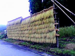こちらの稲ガケはおそらく飯米ととかいって農家の販売用の米でなく、自家消費の為に稲を自然乾燥している状況です。手間がかかるのですがやっぱり農家の人はこうすると美味しい米になるのだと知っているのです。ずるいね!農家の人だけうまい米食って。特権だって?