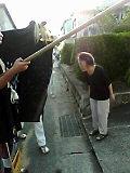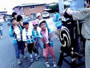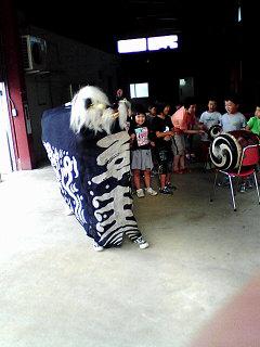 初めてお獅子の幕に入りました。幕の中は真っ暗ですが皆楽しそうです。獅子頭を持って練り歩いてパコン!見事に決まりましたよ!園の先生お二人に手伝っていただきましたが、36名の子供たちを指導するには獅子舞経験者の指導者が数名必要です。どなたかボランティアお願いできる方いらっしぃませんかー? すごくくたびれましたー。