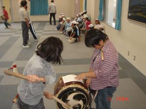 太鼓の連弾を専任太鼓隊に命じました。見事ぴったり!女子12学房に太鼓叩きの稽古を命じました。うぅぅーーむ!なかなかやるなぁー!