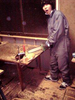 この春山形の大学にお世話になるので修行を始めました。彫刻科を専攻するので一通りの道具の使い方を勉強しています。チェーンソーなんか今まで触った事もないのに最近、見よう見まねで使いこなすようになったようです。最初は蒔きストーブの着火にも苦労しておりました。