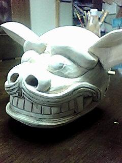 「赤い黒獅子」って矛盾した言い方ですよね。長井の獅子を民俗学的に分類した言い方で「ムカデ獅子」って言う方をするようです。ムカデなのか獅子(ライオン)なのか?きっとムカデの様な獅子という意味なのでしょうね。龍神を象ったのが長井の獅子舞の姿とも言います???さて!ややっこしくなってきました。赤い黒獅子とは?黒獅子になる前の姿なのでしょうか?黒獅子の赤ちゃん?・・・すみません。本当は写真の赤い黒獅子は制作途中の黒獅子なんです。でも何で赤いの?という疑問はまだ解決していません。 つづく