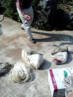 獅子頭制作中でした。チェーンソーの騒音で来客の気配がわかりません。何かに熱中している時、突然背中に声をかけられとビックリして飛び上がってしまいますよね。今日まで8月。まだまだ炎天下。一週間続いた、茅葺アナボコ修復作業が本日終了しました。見に行くと茅の残材が山になってかたずけられるのを待っていました。カブトムシのベットに誰か欲しい人いませんか?無料で差し上げます。連絡は早めにこちらまで!