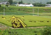 なんとこの田んぼ、田植えと稲刈りには一般人も参加できるんだず。 まさに「オレが田植え」だべした。 しかもインターネットでライブ中継してっから、遠くからでも稲の成長をバッチリ見守ることができるんだべした。 田んぼアート 公式サイト さらにさらに、ただいま稲刈り募集中だず。 ちなみに奥のほうのちょっと濃い緑色の畑は、女将会の手づくり味噌の原料となる大豆畑だべした。 |