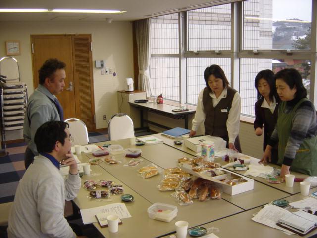 今年の夏のお中元製品の開発会議が開催されました。みんなで、それぞれの製品を持ち寄り、ああでもない、こうでもない、値段が合わない、色が合わない、サイズが合わないと、わいわいがやがや、試食と称して口もモグモグ。手作りで、新製品開発をやっています。