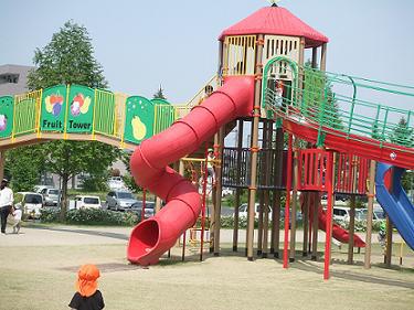 「わんぱくゾーン」には、5種類の滑り台が一体となった「フルーツタワー」の他、姉妹都市のニュージーランド・マールボロウ市から寄贈された同国製の複合遊具が設置されました。