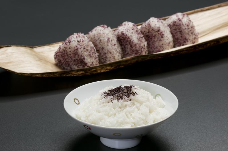 天童温泉では、この「赤」の伝説にちなんで、「赤い」紫蘇と天童温泉から作った塩(商品化済:天童温泉ご塩ですよ)を使い、特製のふりかけを作りました。さらにこのふりかけは、4月〜12月の期間、毎月第1日曜日開催されています縁むすび祈願祭において祈願された、ご利益あるパワーフードとなっております。