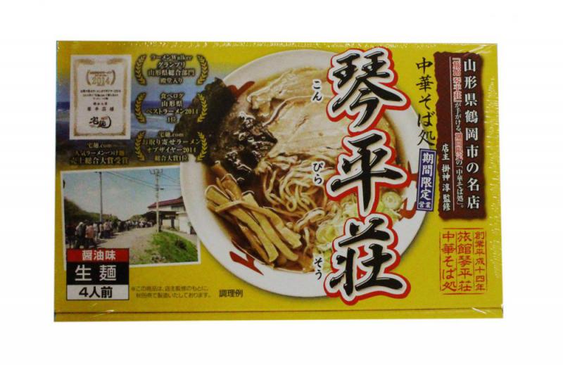 山形県鶴岡市の名店「琴平荘」の中華そばを再現しました。醤油味のスープと生麺が絶品です。