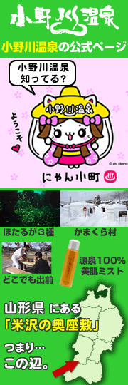 兼続 「今年は、例年より雪が少のぉございますな。」 景勝 「雪とは、やっかいなものじゃな。降らねば降らぬで困るし、降れば降ったで困る。」 兼続 「御意にございます。」 景勝 「雪国にとって、雪はお金と同じ。」 兼続 「降らぬとお金も動きませぬ。」 景勝 「暖冬は、雪いじりがなくて楽じゃが。よしあしじゃな。」 兼続 「そんななか、少ない雪を集めたものどもがおります。」 景勝 「ほほぉ。」 兼続 「小野川温泉では、本日より かまくらがオープン。ちょうど登府屋旅館の裏の公園でございます。」 景勝 「いつものアレができるわけか。」 兼続 「どこでも出前でございますな。雪の中、かまくらにラーメンを出前できまする。」 景勝 「雪といえば、あの祭もあるのぉ。」 兼続 「上杉雪灯籠まつりですな。2月14日・15日でございます。」 景勝 「昼は天地人博2009、夜は雪灯籠まつり。盛り沢山じゃのぉ。」 兼続 「今年は、『天地人』効果もあり、宿の予約は取りにくくなっておるそうでございます。お早めにご決断を。」 景勝 「うむ。いざカマクラへならぬ、いざ小野川へじゃな。」 兼続 「まさに武士の鑑。御恩と奉公でございますな。兼続もお供させていただきます。」 ...もっと詳しく |