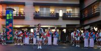 路上での阿波踊りの披露、その場のお客様との阿波おどり体験コーナー、一緒に踊る飛び入りコーナーと3部構成でした。