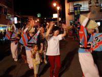 路上での阿波踊りの披露、その場のお客様との阿波おどり体験コーナー、一緒に踊る飛び入りコーナーと3部構成でした。