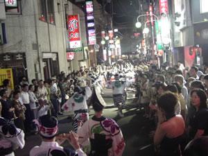 約40年ぶりにすずらん街を歩行者天国にし、駅前の飲食店街はじめ4つのステージ。町中、観衆があふれんばかり。