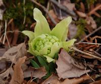 落ち葉と枯れ草色の大地から頭を出す春の使者。