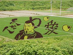 小野川温泉の田んぼアート、今年は「直江兼続」。