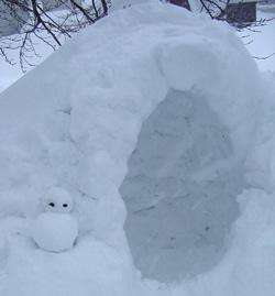 2人用かまくら「ぷちくら」の脇に小さな雪だるまができていました。お客様が作ってくださったようです。
