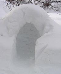 降雪でぷちくらもこんな感じになっちゃいました。最初は固い雪で組んだエスキモーの家状だったんですが、だんだん本物のかまくらのような外観に。
