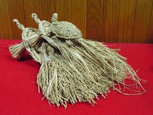 鈴ではないですが、亀の藁細工です。親亀の上に小亀、小亀の上に孫亀です。すばらしい技です。
