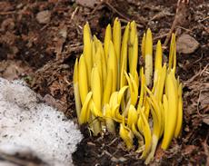 まだ花は咲きませんが、雪が解けた地面に真っ先に顔を出し、成長中です。