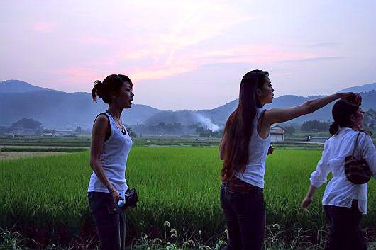 っで、始めて農道らしき枝道へ車を進めたら…なんと風流な田園風景が見えてきました〜!
