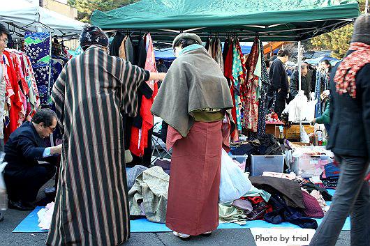 参道には露店も例月以上に多く、植木・骨董・古着・衣料品などの店に加えて、