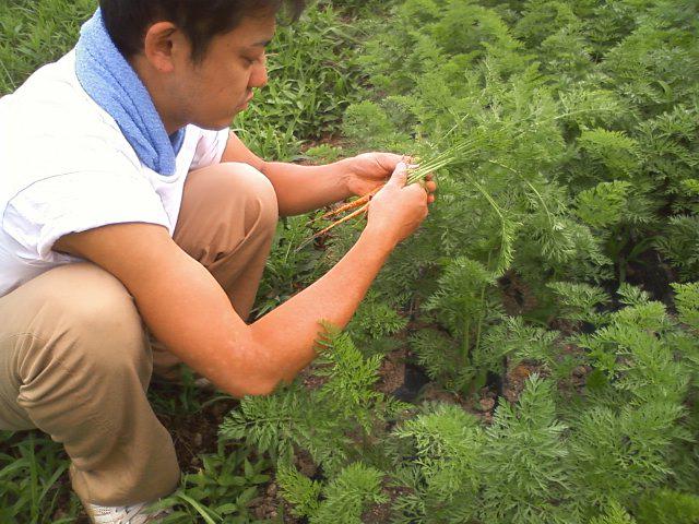 おいしい野菜を一生懸命収穫してます。