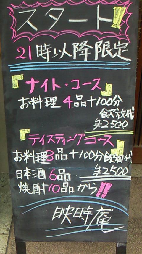 ついに登場!!映時庵の『ナイト・プラン』残業帰りの方もチョット飲みたりない方におすすめのプランするです!!
