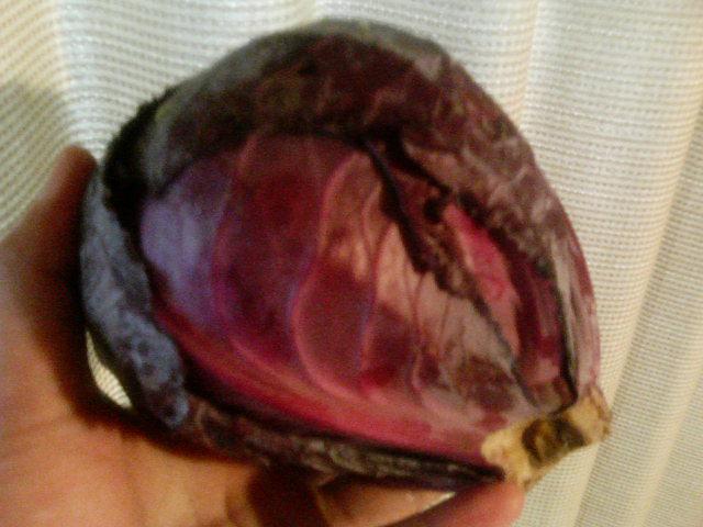 紫色のキャベツ。見た目鮮やか、味もピカイチです。映時庵スタッフのKからいただきました。さっそく料理に使いたいと思います。
