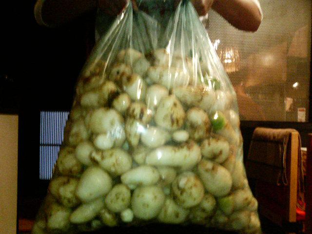 里芋の歯応えと芋煮の味で好評の映時庵芋煮=B写真がとれたて里芋です。