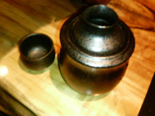 芋焼酎を燗でくれと言われました。自分はそのままストレートで燗にし、お客様に出しました。そこでお客様より・・・焼酎の燗というのは酒とお湯を1:1で割ったものを燗にするんだとか・・・ 確かに両方飲み比べましたがストレートの方はトゲ≠ェあり割った方は香りもよくまろやかでした。昨日も勉強になった一日でした。