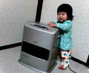 ヒーターにつかまって周りをぐるぐる歩き回る。