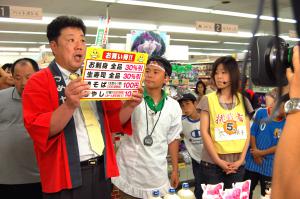 全部もってけ〜!!)の生放送がありました。 置賜からは今回が2回目の放送。 チャレンジャーの米沢の佐藤ローズさんは、 母国フィリピンからお嫁に来て18年! 川西店は、お仕事の関係で良くご利用いただいています。 買い物カゴには、米沢牛、天然の真鯛、マンゴー、うまいたれ、スイカ、 お刺身、お寿司盛り合わせなどなど・・・・・。 7分間 38点(62,906円分)を、みごとにけん玉に成功して 全商品お持ち帰りいただきました。 次の置賜からの挑戦者にも頑張ってほしいですネ! 加藤さ〜ん おめでとうございました! うめやホームページ |
