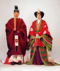 ←紀香さんが十二単ということは陣内さんは束帯をお召しになるんでしょう。十二単と束帯のサンプル画像。女性の髪形は大垂髪(おすべらかし)