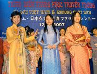 画像:マイクを持っているのがゆかりさん。黄色のアオザイは現地に行ってから作ってもらったそう。