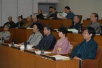 開会を告げるブザーがが鳴ると、灰色や緑などの和服をまとった市議らが、普段よりゆったりとした足取りで議場入り。今期限りで勇退する意向を示している須藤紘一議長は、5期20年間にわたって毎回着続けた紋付きはかま姿で登場。「最後のきもの議会。身が引き締まる思いだ」と話していた。