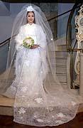 こういうオーガンジーやレースのドレス風打ち掛け、雑誌・パンフレットや衣装屋さんのウィンドウでよく見かけるようになりましたが、今のところ、私は実際に披露宴でお召しになっている花嫁さんを見たことはありません…。