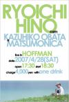 『日野良一 with 小畑和彦&マツモニカ』 日時:4月28日(土) 17:30開場 18:30開演 場所:Diner and Cocktail Bar HOFFMAN (山形市香澄町2-8-1 山形フォーラム2F) チャージ:4000円(1ドリンク付) チケット販売:HOFFMAN、ミュージック昭和、VigoFM、Bar Saudade、Espresso 主催・お問い合わせ:山形ブラジル音楽普及協会 (e-mail:bossacur@ma.catvy.ne.jp) 後援:Vigo FM (78.8MHz) <日野良一 プロフィール> 1980年岡山県生まれ。幼少の頃よりクラシックギターを学ぶ。 大学進学時に福岡に移り、在学中にジョアン・ジルベルトを聴き、ブラジル音楽に傾倒。それ以降、サンバ・ボサノヴァのバッキングギターを独学で学び、主に福岡在住のシンガーのバッキングギタリストとして活動を始める。2004年4月、大学卒業と同時にプロとしての活動をスタート。その頃からサンバ・ボサノヴァ・MPB等の弾き語りスタイルでのライブ活動が中心となる。2005年10月上京。弾き語りや、様々なミュージシャンをサポートに迎えた演奏形態で、都内各所でのライブ活動を精力的に行っている。 主にブラジルミナス地方のサウンドに影響を受けた美しいギターのハーモニーと、その独特の声質から紡ぎ出される世界観は、日本のブラジル音楽シーンを始め様々なシーンで注目を浴びている。 Brasilian Artist“日野 良一”の不定期日記 vento vago 〜気ままな風〜 -CD参加作品- 2006.9.21 on sale GIRA MUNDO DISCOS『Music of the Present age』 Djavanの『Sina』の斬新な弾き語りカヴァーで参加。 2006.10.4 on sale Happiness Records『TOKYO BOSSA NOVA 〜flores〜』 Richard Bona & 中村善郎 『kaze ga kureta melody』の弾き語りカヴァーで参加。 |