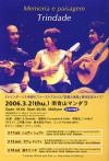 Torindade 近藤くろ(バンドリン) 稲葉光(カバキーニョ) 阿部浩二(ギター) 日時:3月18日(土) 18:00開場、19:00開演 場所:蔵オビハチ(山形市十日町3-1-43) 主催:山形ブラジル音楽普及協会(bossacur@ma.catvy.ne.jp) 蔵オビハチ(TEL:023-626-2737) 後援:VigoFM(78.8MHz) ◆トリンダージのファーストアルバム「Memoria e Paisagem(記憶と風景)」は、ライブ当日、会場にて販売いたします。お楽しみに! |