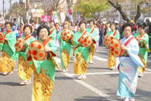 午後に行われる民踊流しと時代行列の様子。 民踊流しの方は、およそ千人の行列が、米沢新調と花笠音戸を 繰返し行い、大門交番から伝国の杜までの区間を踊りました。 米沢時代行列の方は、米沢の偉人達を紹介したもので 歩いている所を音声で、どういったことをしたのか説明してやした。 大河ドラマの天地人が決定したせいか、直江兼続役の方が多く 注目を浴びていました。近くで観察して見たが本物の 愛の前立てとは、ちょっと違う兜だった。 レプリカ品はいくつかあるのかもね〜 記事の続き>>民踊流し・米沢時代行列 |