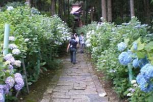 参道に植えられたアジサイの花は、2万5千株ほどあり