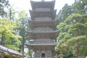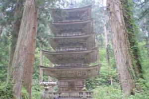 山形県鶴岡市にある龍澤山善宝寺の五重塔の写真です。